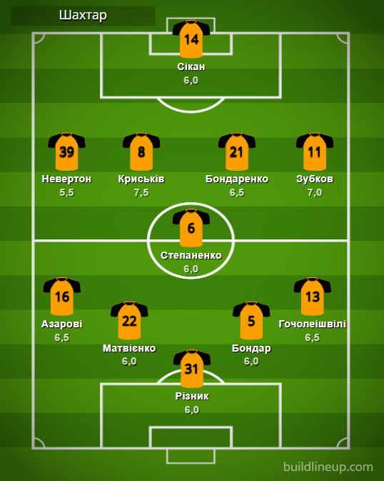 «Шахтер»: Ризнык – Азаров, Матвиенко, Бондарь, Гочолеишвили – Степаненко – Невертон (Эгиналду, 46), Крыськив (Очеретько, 90+1), Бондаренко (Назарина, 75), Зубков – Сикан (Келси, 87).