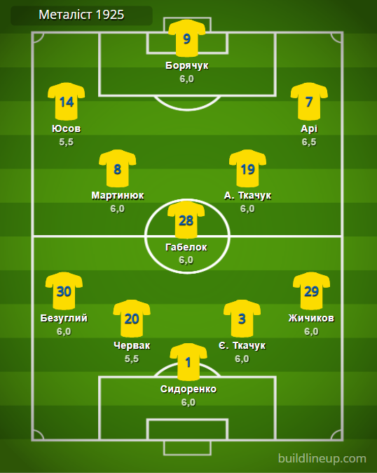 «Металлист 1925»: Сидоренко – Безуглый, Червак, Е. Ткачук, Жичиков – Мартынюк, Габелок, А. Ткачук (Сидоров, 69) – Юсов (Чирук, 61), Борячук (Бычек, 87), Ари (Русин, 61).