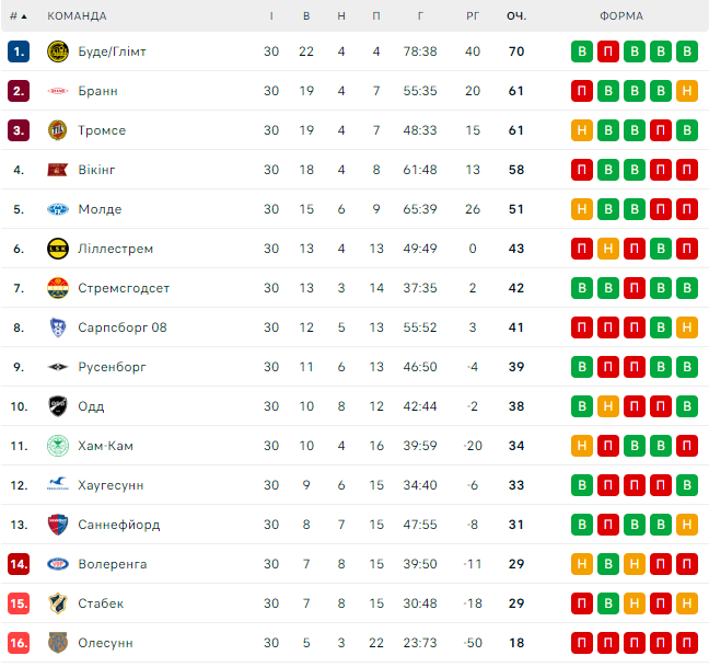 Буде-Глимт выиграл чемпионат, призерами стали Бранн и Тромсе