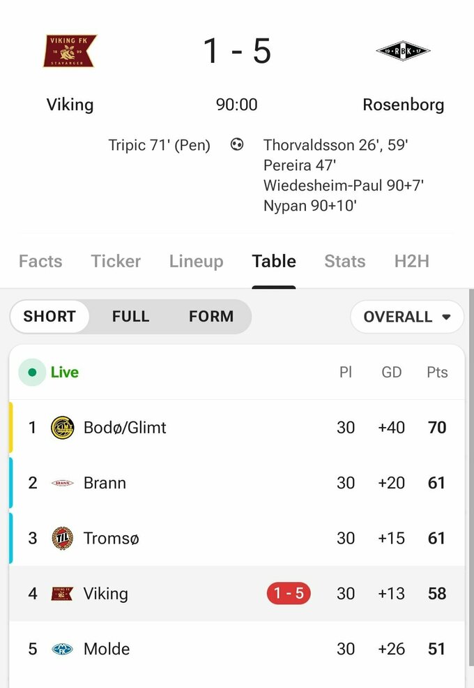 - Викинг – Русенборг – 1:5