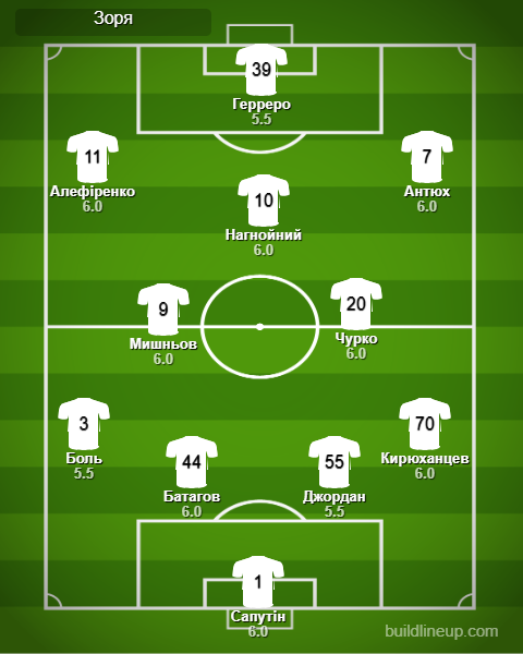 «Заря»: Сапутин - Батагов, Джордан (Данченко, 60), Боль, Кирюханцев, Мишнев, Чурко, Нагнойный (Бугай, 82), Антюх (Горбач, 60), Алефиренко (Жан, 82), Герреро.