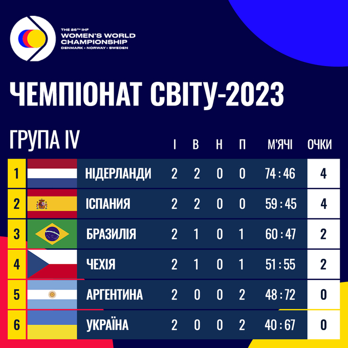 В стартовой встрече на мировом первенстве украинки с крупным счетом уступили сборной Бразилии – 20:35. Во втором поединке «сине-желтые» проиграли Испании – 20:32. В заключительном матче первого группового турнира украинки обыграли Казахстан и заняли третье место в группе G, что позволило выйти во второй этап.
