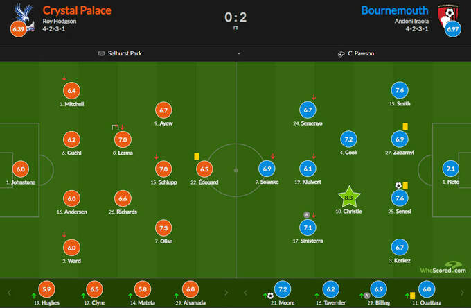 Оценки WhoScored за матч Кристал Пэлас – Борнмут – 0:2