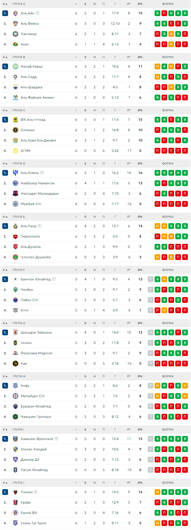 - 05.12. 18:00. Истиклол (Таджикистан) – Аль-Наср (Сауд. Аравия) – 1:1 (Джалилов, 32 – Гариб, 50)