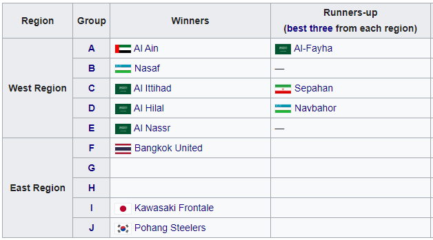 Восток: «Бангкок Юнайтед» из Таиланда, «Кавасаки Фронтале» из Японии и «Пхохан Стилерс» из Южной Кореи.