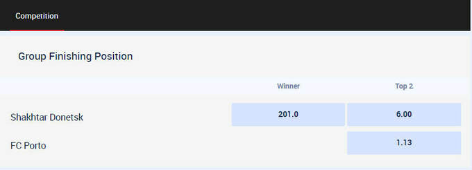 Коэффициент на то, что «Шахтер» победит и займет 2-е место в группе составляет 6.00 по оценкам лондонской букмекерской конторы William Hill.