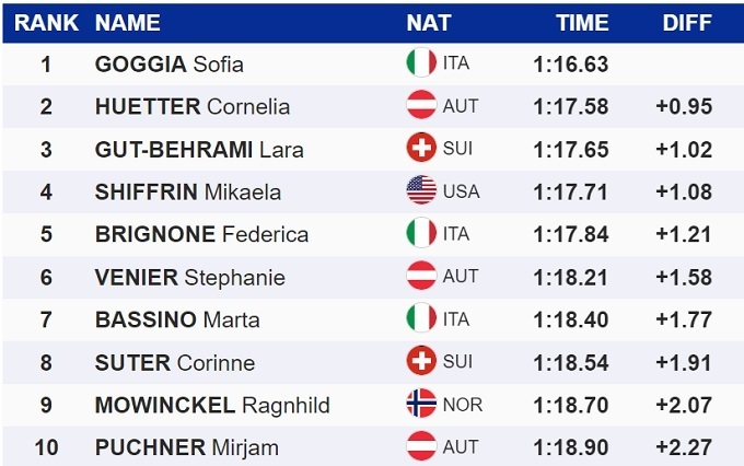Горные лыжи. Годжа разгромила соперниц в первом супергиганте сезона