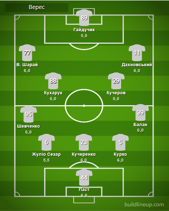 «Верес»: Паст – Шевченко, Жулио Сезар, Кучеренко, Курко, Балан – В. Шарай, Кучеров (Баран, 86), Кухарук, Дахновский (Ковалюк, 90) – Гайдучик (Шестаков, 74).