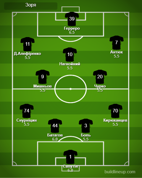 «Заря»: Сапутин, Снурницын, Батагов, Боль, Кирюханцев (Джордан, 68), Нагнойный (Данченко, 46), Мышнев (Бугай, 59), Чурко, Антюх (Мичин, 76), Герреро, Д.Алефиренко (Горбач, 46).