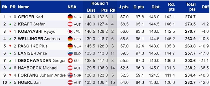 Немецкий прыгун Карл Гайгер выиграл первый личный старт на домашнем этапе Кубка мира в Клингентале. Он на 1,2 балла опередил лидера Кубка мира Штефана Крафта, прервав его серию из четырех побед подряд на старте сезона. Топ-3 замкнул японец Рёю Кобаяси.