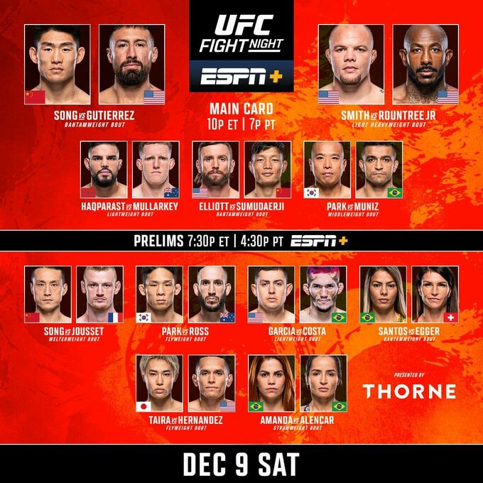 В ночь c 9 на 10 декабря в Энтерпрайзе (штат Невада) проходит турнир по смешанным единоборствам UFC Fight Night 233.