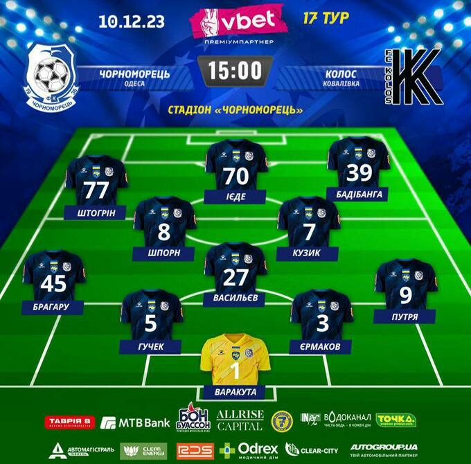 «Черноморец»: Варакута, Путря, Ермаков, Гучек, Брагару, Васильев, Штогрин, Кузык, Шпорн, Бадибанга, Иеде.