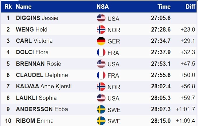 Диггинс опередила норвежку Хейди Венг и немку Викторию Карл. Для обеих это первые подиумы в нынешнем сезоне.