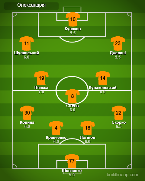 Руслан Ротань сделал три замены по сравнению с проигранным матчем прошлого тура с «Кривбассом» (1:2). Никита Шевченко вернулся в ворота вместо Ермакова, Логинов играл в центре защиты вместо Савченко, а Скорко заменил Смирного. Кстати, команда вышла на поединок в форме необычного цвета – оранжевого. Это связано с 75-летием александрийского футбола. По информации пресс-службы клуба, оранжевая форма – это знак уважения к первому профессиональному клубу города ФК «Шахтер», основанному в 1948 году. Он выступал в чемпионате УССР в 60-х годах прошлого столетия.