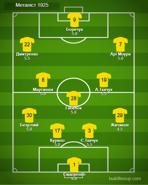 «Металлист 1925» (замены): Сидоров - 5.0, Русин - 5.0, Ременюк - 5.0, Капинус - 4.5.
