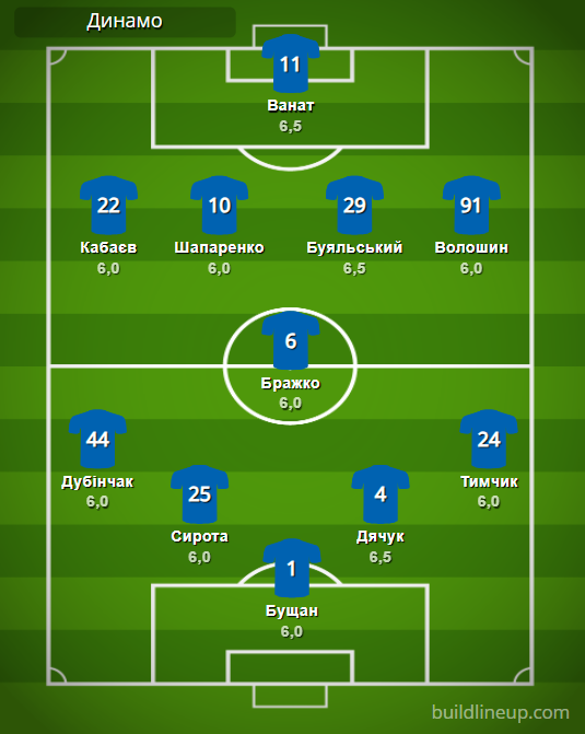 «Динамо» Киев: Бущан – Дубинчак (Вивчаренко, 61), Сирота, Дячук, Тымчик – Бражко – Кабаев (Караваев, 90), Шапаренко (Андриевский, 66), Буяльский, Волошин (Бенито, 62) – Ванат (Супряга, 90).