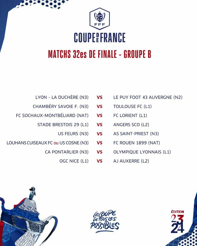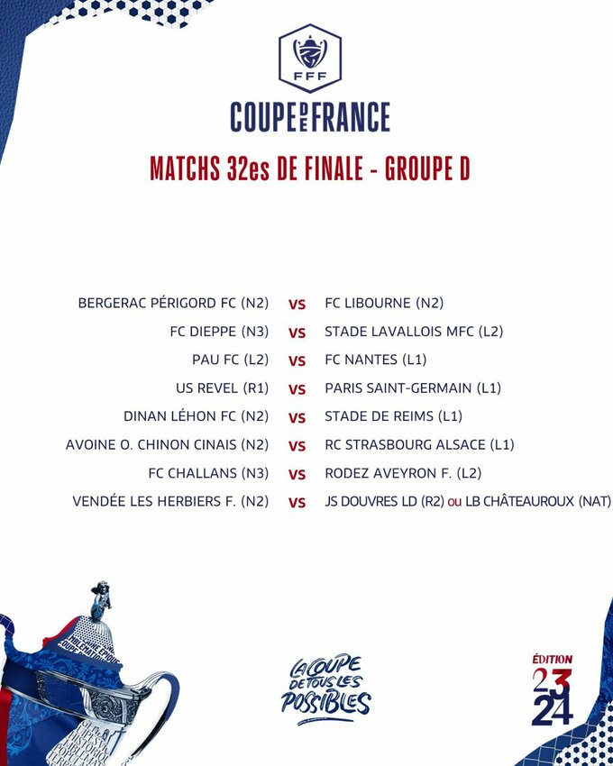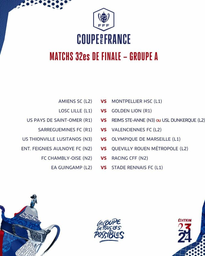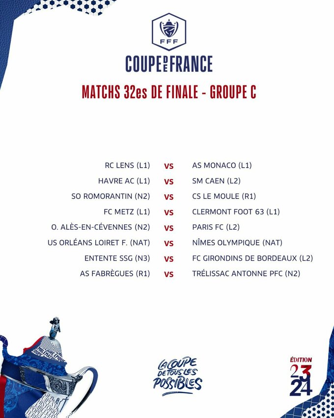 Результаты жеребьевки 1/32 финала Кубка Франции