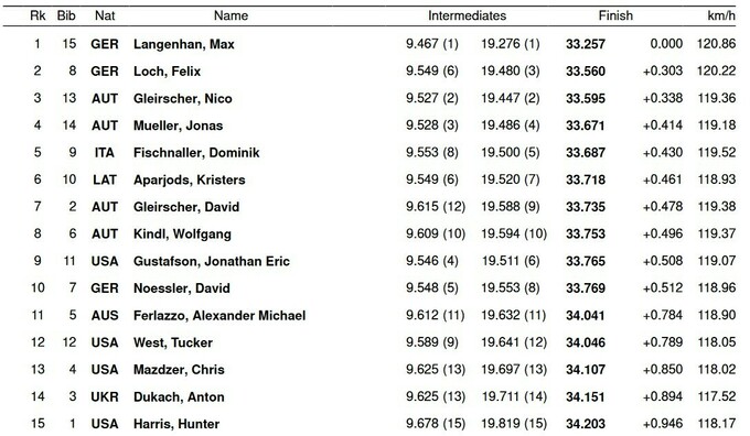 На финише бронзовый призер чемпионата мира 2023 в спринте опередил одного из самых титулованных саночников в истории Феликса Ло, действующего чемпиона мира, более, чем на 0.3 секунды. Также Лангенхан показал лучшее время на обеих промежуточных отметках. Замкнул призовую тройку австрийский спортсмен Нико Гляйршер.