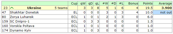 В мид-уик завершился групповой раунда еврокубков, и произошли изменения в таблице коэффициентов УЕФА.