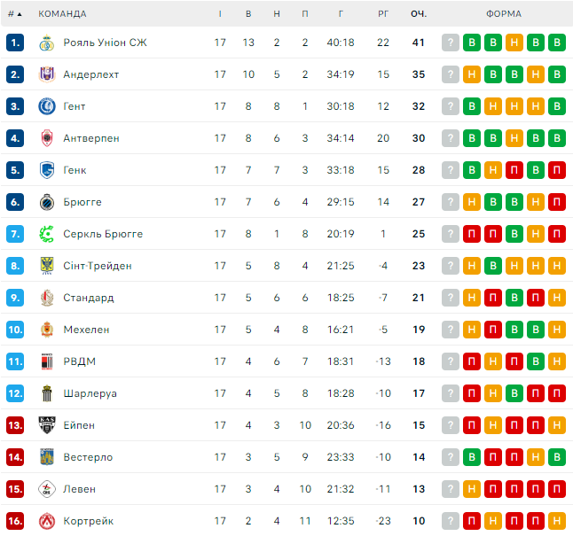 Встреча чемпионата Бельгии начнется 15 декабря в 21:45 по киевскому времени
