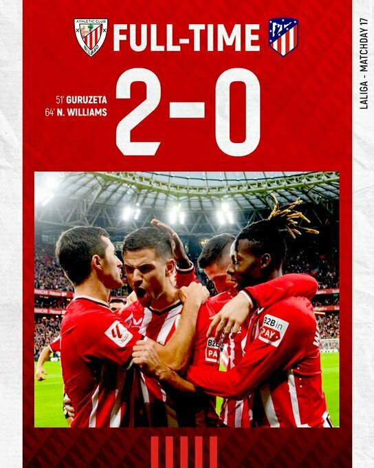16 декабря состоялся матч 17-го тура Ла Лиги между командами «Атлетик» Бильбао и «Атлетико». Игра завершилась со счетом 2:0 в пользу хозяев.