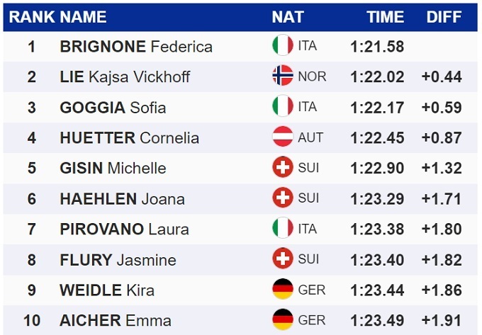 Компанию на подиуме ей составили норвежка Кайса Викхофф Ли и партнерша по сборной Италии Софья Годжа.