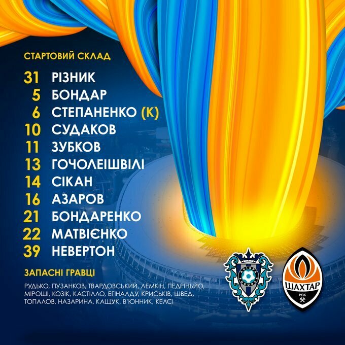 Шахтер: Ризнык, Гочолеишвили, Матвиенко, Бондарь, Азаров, Степаненко, Бондаренко, Зубков, Судаков, Невертон, Сикан