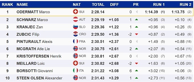 Швейцарский горнолыжник Марко Одерматт оформил победный дубль в гигантском слаломе на этапе Кубка мира в итальянской Альта Бадии. Он более чем на секунду опередил своего главного соперника по общему зачету, австрийца Марко Шварца.