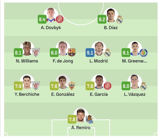 Символическая сборная 17-го тура Ла Лиги по версии SofaScore.