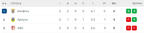 Благодаря этой победе «орлы» заняли первое место в группе В и вышли в полуфинал турнира с 6 очками из 6 возможных. Ранее «Бенфика» выиграла 2:0 на выезде у «Ароки».