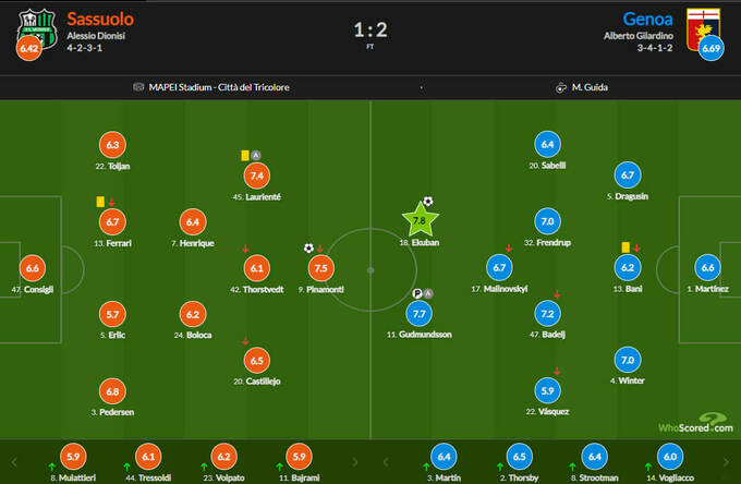 Оценки WhoScored за матч Сассуоло – Дженоа – 1:2