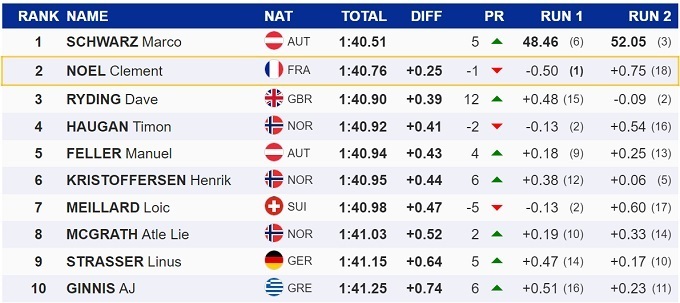 Шварц сегодня в слаломе опередил француза Клемана Ноэля и британца Дэйва Райдинга.