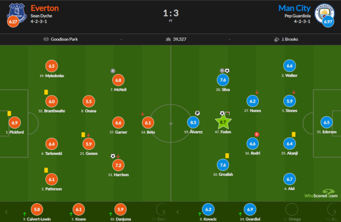 Лучшим игроком встречи был признан полузащитник «Манчестер Сити» Фил Фоден, который забил гол и получил оценку 8.7.