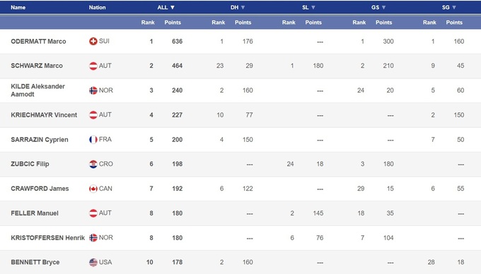 Ну а Марко Одерматт травмой Шварца воспользовался сполна: второе место в скоростном спуске и победа в супергиганте. Стоит отметить, что в скоростных спусках на Кубке мира швейцарцу пока что откровенно не везет: как и в Валь Гардене, от победы его отделили считанные сотые доли секунды. Несмотря на то, что Одерматт – действующий чемпион мира в скоростном спуске, на Кубке мира в этой дисциплине у него до сих пор ни одной победы. Впрочем, благодаря своей стабильности Марко возглавил зачет Кубка мира в скоростном спуске, и суммарно на данный момент лидирует в борьбе сразу за три Малых хрустальных глобуса.