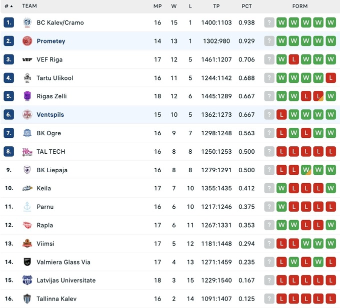 Вентспилс – Прометей – 94:96 (32:21, 18:31, 16:23, 28:21)