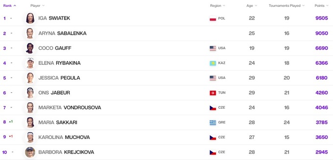 WTA выпустила первую редакцию мирового рейтинга в 2024 году.