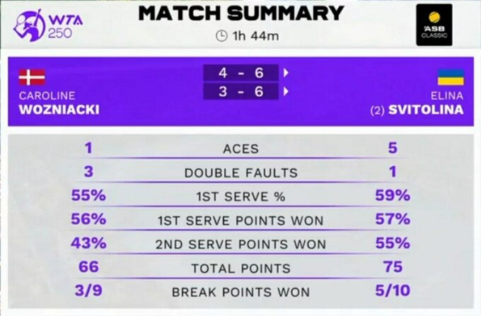 Элина выиграла у Каролин Возняцки в 1/16 финала соревнований в Новой Зеландии