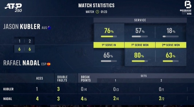22-кратный победитель турниров Grand Slam Рафаэль Надаль пробился в 1/4 финала хардового турнира АТР 250 в Брисбене (Австралия).