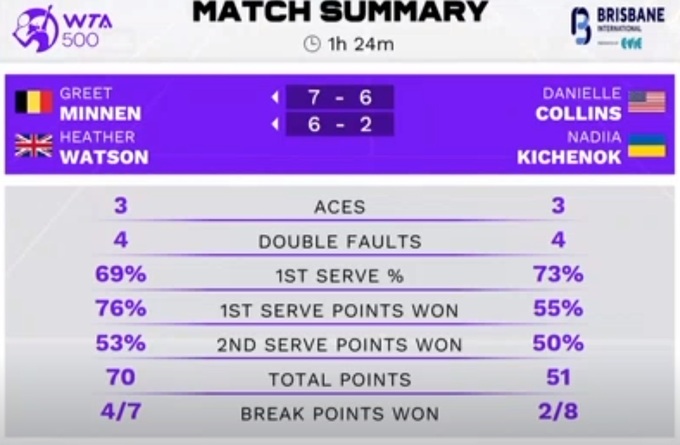 Надежда Киченок / Даниэль Коллинс – Грет Миннен / Хезер Уотсон – 6:7(1), 2:6