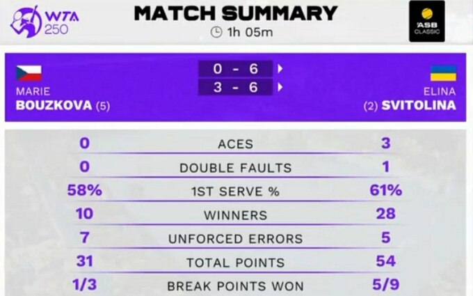 Sublime Svitolina 💯@ElinaSvitolina powers to the Auckland semifinals over Bouzkova 6-0, 6-3.#ASBClassic pic.twitter.com/SAOIHEB6Bh