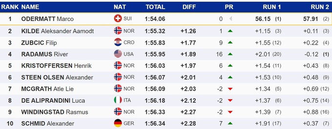 Для Одерматта это седьмая подряд победа в гиганте на Кубке мира.