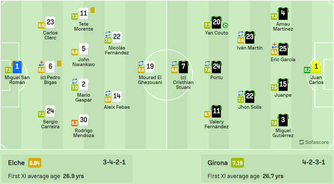 Оценки SofaScore за матч Эльче – Жирона – 0:2