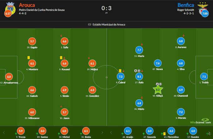 Оценки WhoScored за матч Арока – Бенфика – 0:3