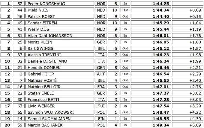 Кунгсхауг бежал в восьмой паре и установило время, которое не смог улучшить ни один из двух главных фаворитов гонки и любимцев трибун арены «Тиалф». В итоге Кьелд Наюс занял второе место, проиграв скандинаву всего 0.09 секунды, а Патрик Руст стал третьим с отставанием от времени Кунгсхауга в 0.15 секунды.
