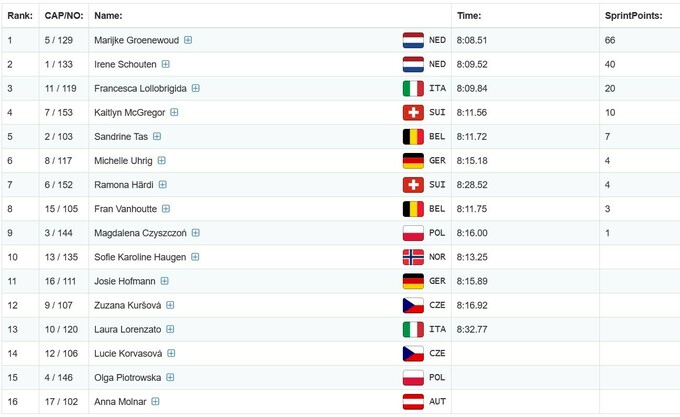 Коньки. Хруневауд стала чемпионкой Европы в масс-старте
