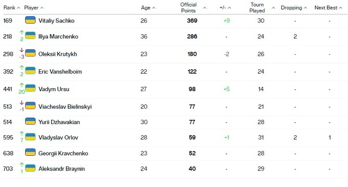 Илья Марченко и Эрик Ваншельбойм улучшили свое положение на 2 места. Вадим Урсу спрогрессировал на 20 мест, в который раз за последнее время обновив личное достижение. Также немного добавил Владислав Орлов, у остальных без особых изменений.