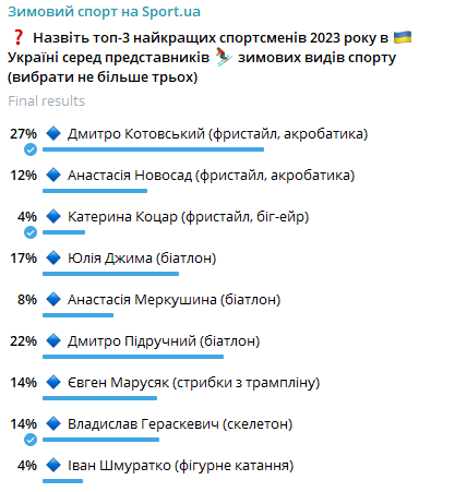 Итоги голосования за лучшего спортсмена Украины 2023 в зимних видах спорта