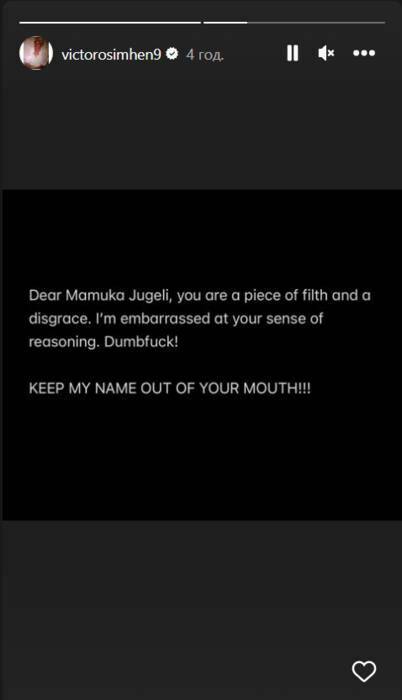 Форвард «Наполи» Виктор Осимхен эмоционально отреагировал на высказывания агента его одноклубника Хвичи Кварацхелии, Мамуки Джугели, который предположил, что, несмотря на подписанный в конце декабря новый контракт с «Наполи», нигериец ближайшим летом переберется в Саудовскую Аравию.