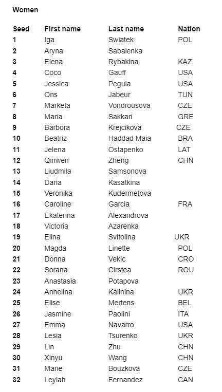 В список сеяных теннисисток попали три украинки: Элина Свитолина (№19), Ангелина Калинина (№24) и Леся Цуренко (№28).