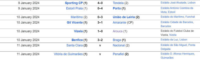9 января «Спортинг» разбил «Тонделу» 4:0, «Порту» разгромил «Эшторил» также 4:0.